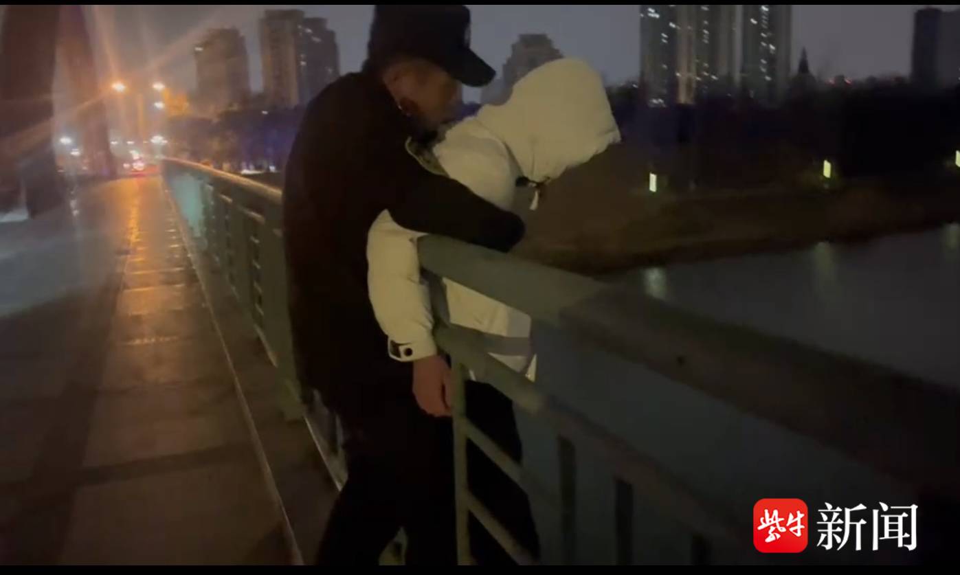 “当时他半个身子悬在桥外,情绪非常激动。”辅警赵苏宁回忆,两人分工协作,一边向指挥中心请求支援,一边悄然靠近。千钧一发之际,赵苏宁抓住男子转身瞬间,一个箭步冲上前将其拦腰抱住。与此同时,张旭迅速翻越护栏配合施救。男子激烈挣扎时,两人一面以身体作“人墙”阻隔危险,一面耐心疏导:“兄弟,我们陪着你!有什么事都能解决!”经过近20分钟劝导,男子情绪逐渐平复,最终被合力转移至安全区域。